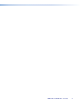 Error Messages E01 — Invalid output channel number (too large) E10 — Invalid command E13 — Invalid value (too large) Command and Response Table for SIS Commands Command ASCII Command (host to unit) Response (unit to host) Additional Description X!*X@B VmtX!*X@] Video mute output X! only 1, 2, 3, or 4 (HDMI DA4) 1, 2, 3, 4, 5, or 6 (HDMI DA6) Video Mute Video mute single output X@ = 0 (video mute disabled) or 1 (video mute) or 2 (video and sync mute) Video mute all outputs X@B VmtX@] Video mute