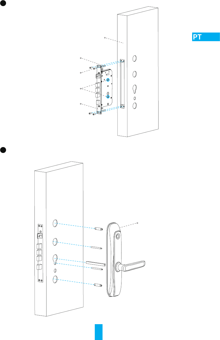 Instale o corpo da fechadura no painel da porta com parafusos.