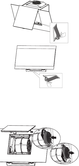 • To re-insert each charcoal lter, place up against
