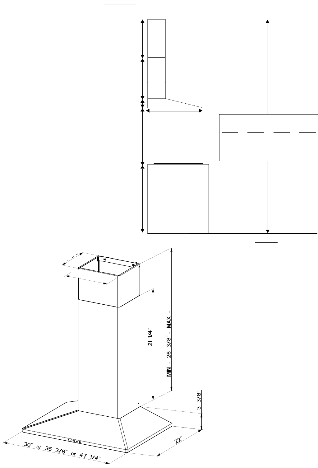 x = distance from hood to cooktop