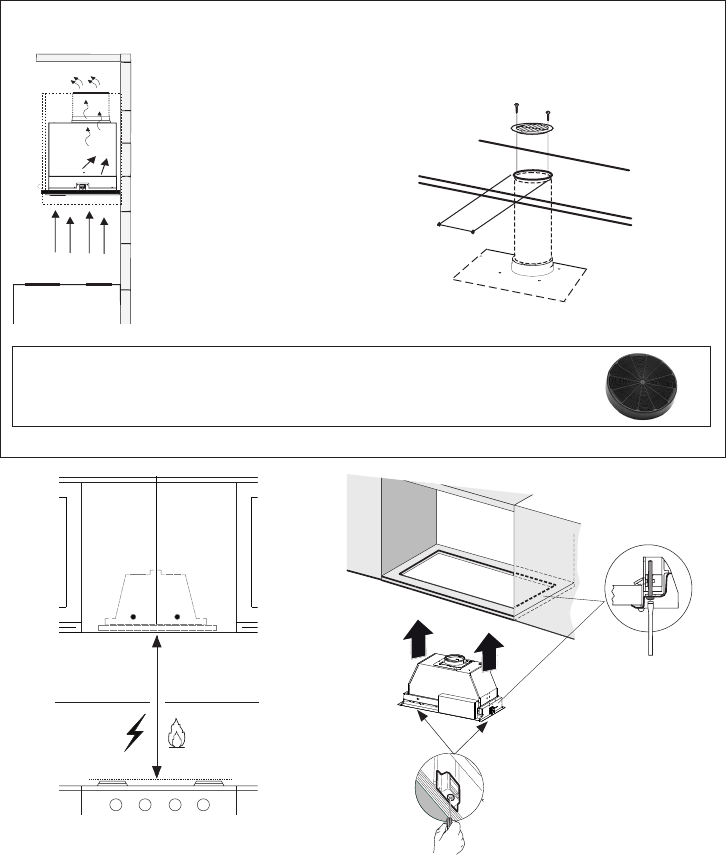 La hotte est xée à l'ouverture de l'armoire par deux brides à ressort, une de chaque côté