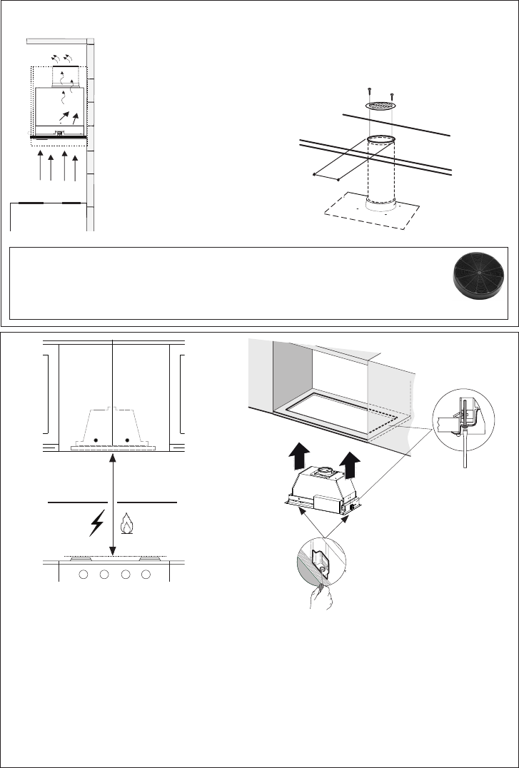 Instale la campana de inserción a través del recorte del armario en la abertura del armario