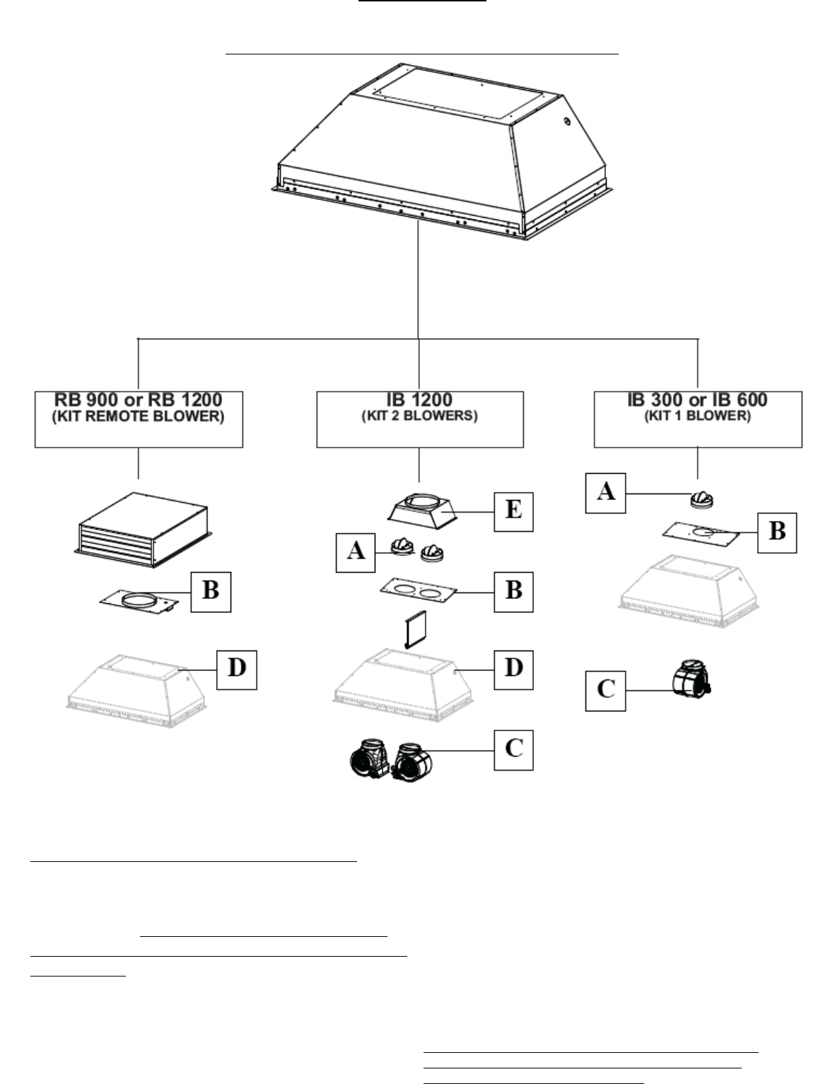 rangehood seulement avec les ventilateurs internes ou à distance recommandés et