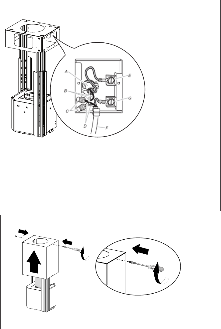 G. Câble d'alimentation de la hotte branché à la vis de