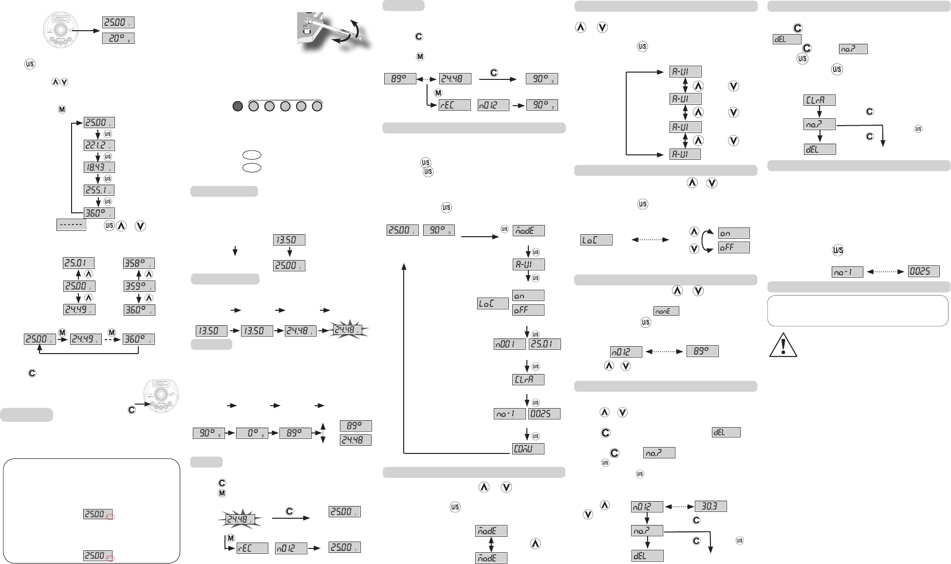 No modo de ângulo, o LCD apresenta o ângulo rodado. O ângulo é contado após o binário