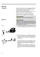 Montage Montage Auspacken Packen Sie das Gerät aus und überprüfen Sie den Inhalt der Verpackung auf Vollständigkeit (siehe Inhaltsverzeichnis „Lieferumfang“). Geben Sie das Verpackungsmaterial sortenrein in die dafür vorgesehenen Sammelbehälter Sollten Sie einen Transportschaden bemerken, wenden Sie sich umgehend an Ihren Händler WARNUNG! Verwenden Sie niemals ein defektes Gerät Montieren WARNUNG! Prüfen Sie vor der Montage, ob der Netzstecker gezogen ist.