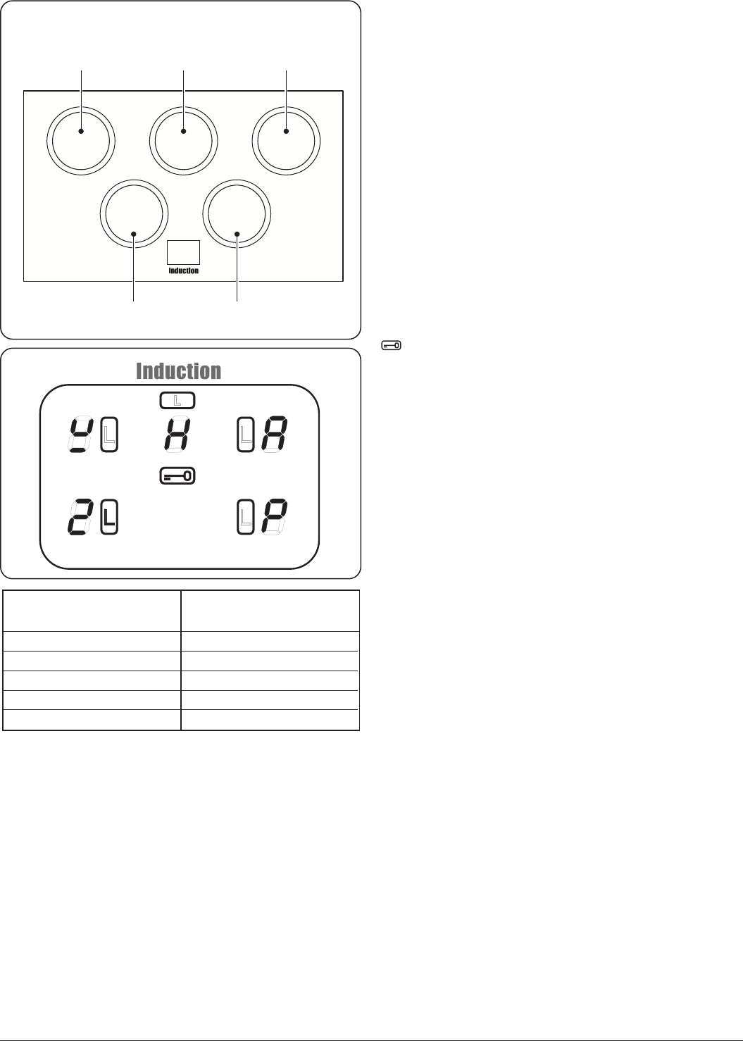 The hob control display (Fig. 2.5) informs you of the