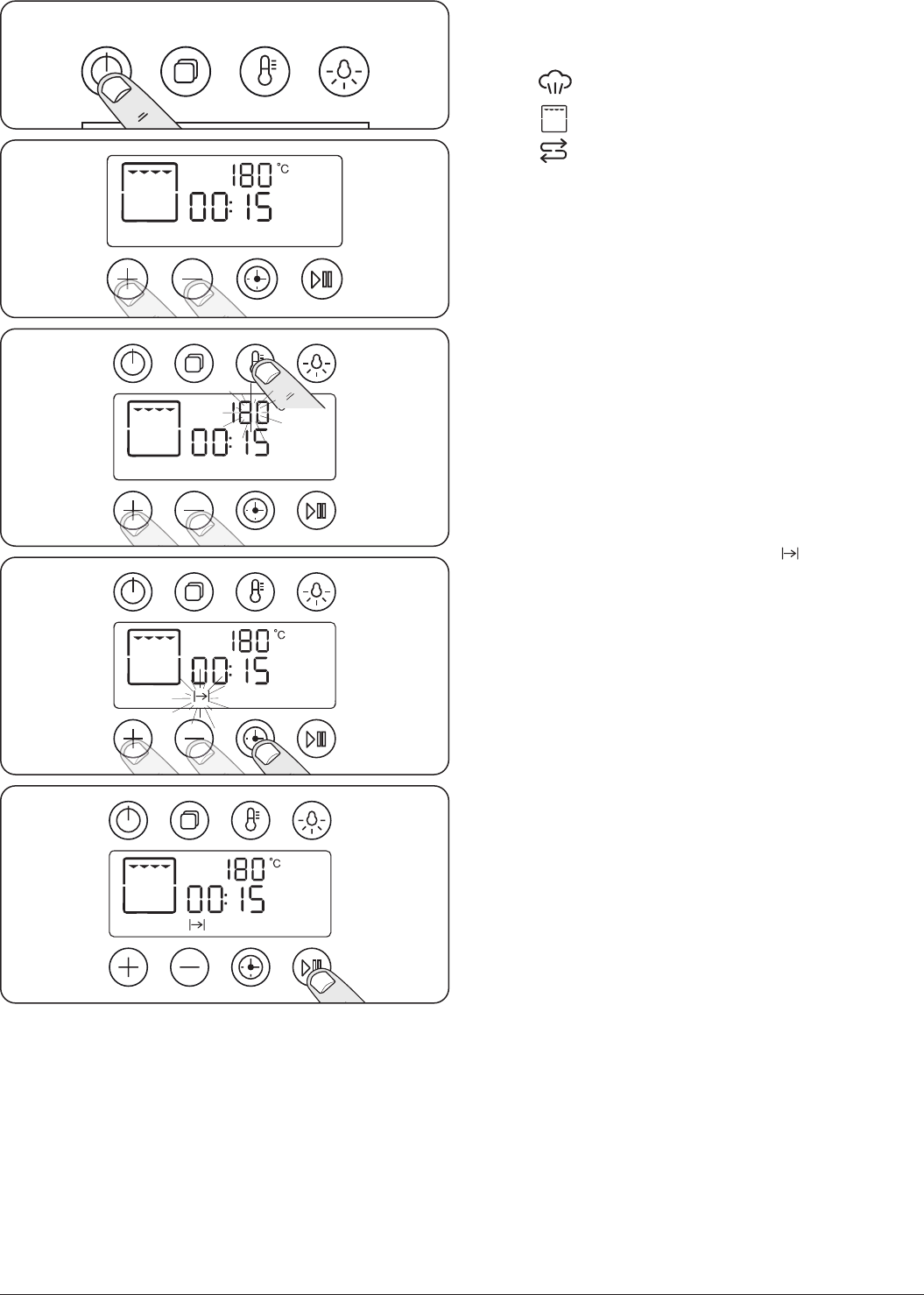 Switch the oven on and tap the [ + ] or [ - ] buttons to scroll