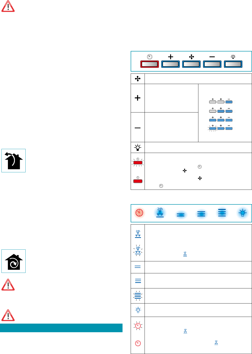 Al termine della cottura lasciare in funzione la cappa fino a completa aspirazione di tutti i