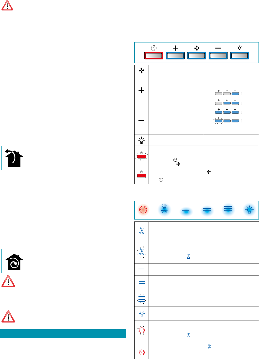 Switch on the hood at least one minute before starting to cook to convey fumes and va-
