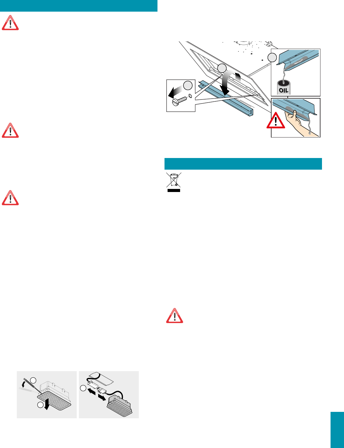 Erityisesti on huomioitava metalliset rasvanpoistosuodattimet ja aktiivihiilisuodattimet; tois-