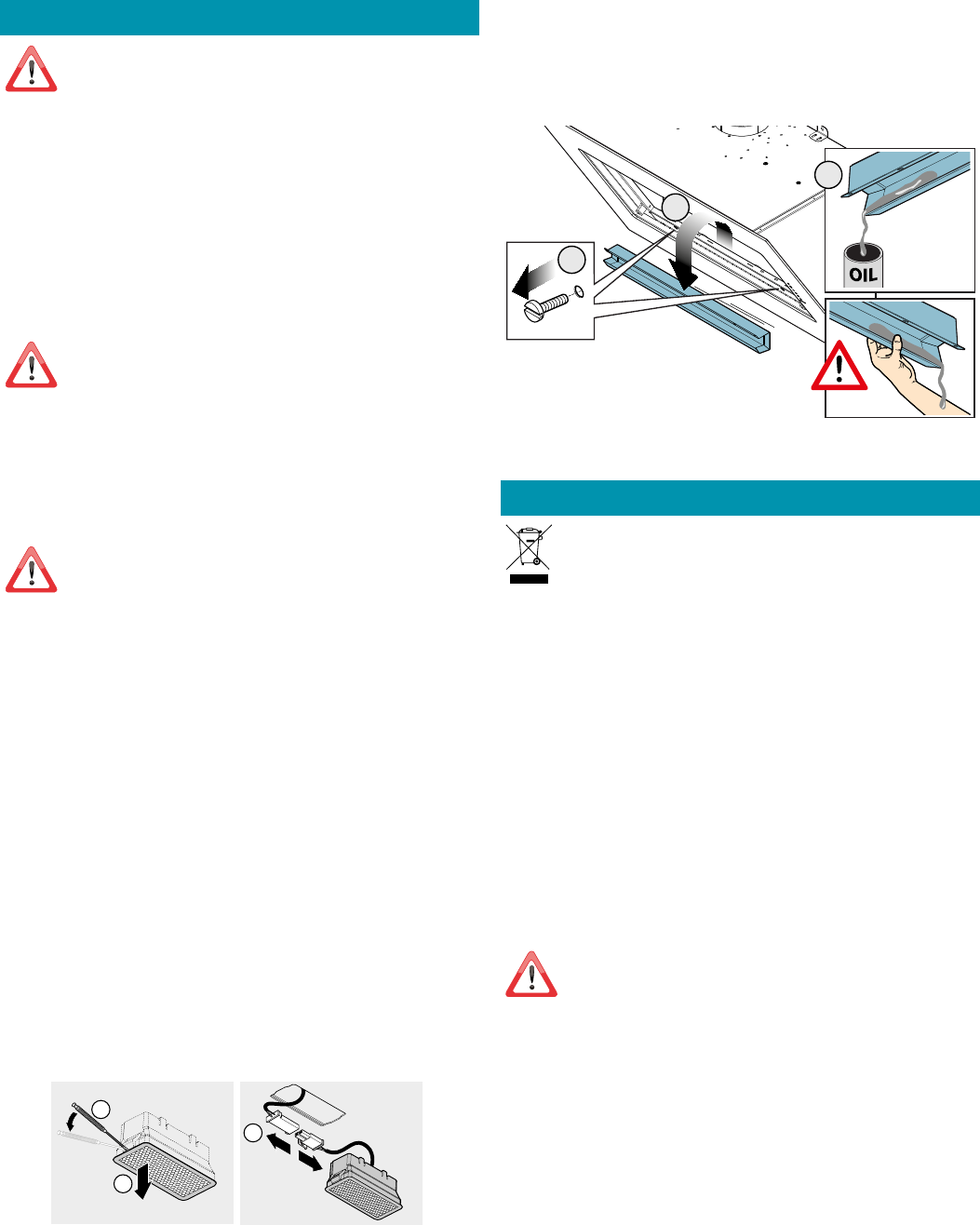 Særskilt oppmerksom må rettes mot metallfettfiltrene: hyppig rengjøring av filtrene og tilhø-