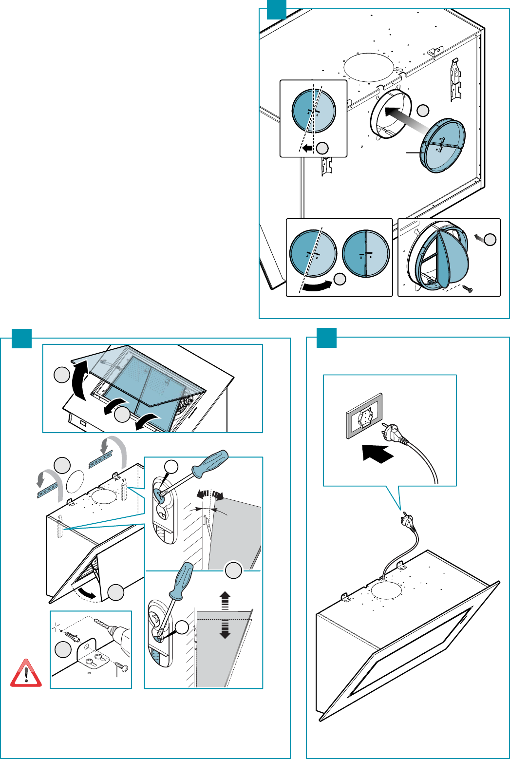 DK - Montage af kontraventil (8). Fastgørelse af emhætten (9).
