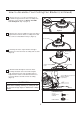 Cómo ensamblar las aspas del ventilador de techo (cont.) 6. Vuelva a ensamblar la cubierta de la carcasa y la arandela del acoplador del motor, como se muestra. (Figura 6) Arandela del acoplador del motor Cubierta de la carcasa superior Figura 6 7. Apriete firmemente los seis tornillos que se retiraron en el paso 3 en el ensamble del motor. (Figura 7) Motor Figura 7 Cómo ensamblar el ventilador de techo 1.