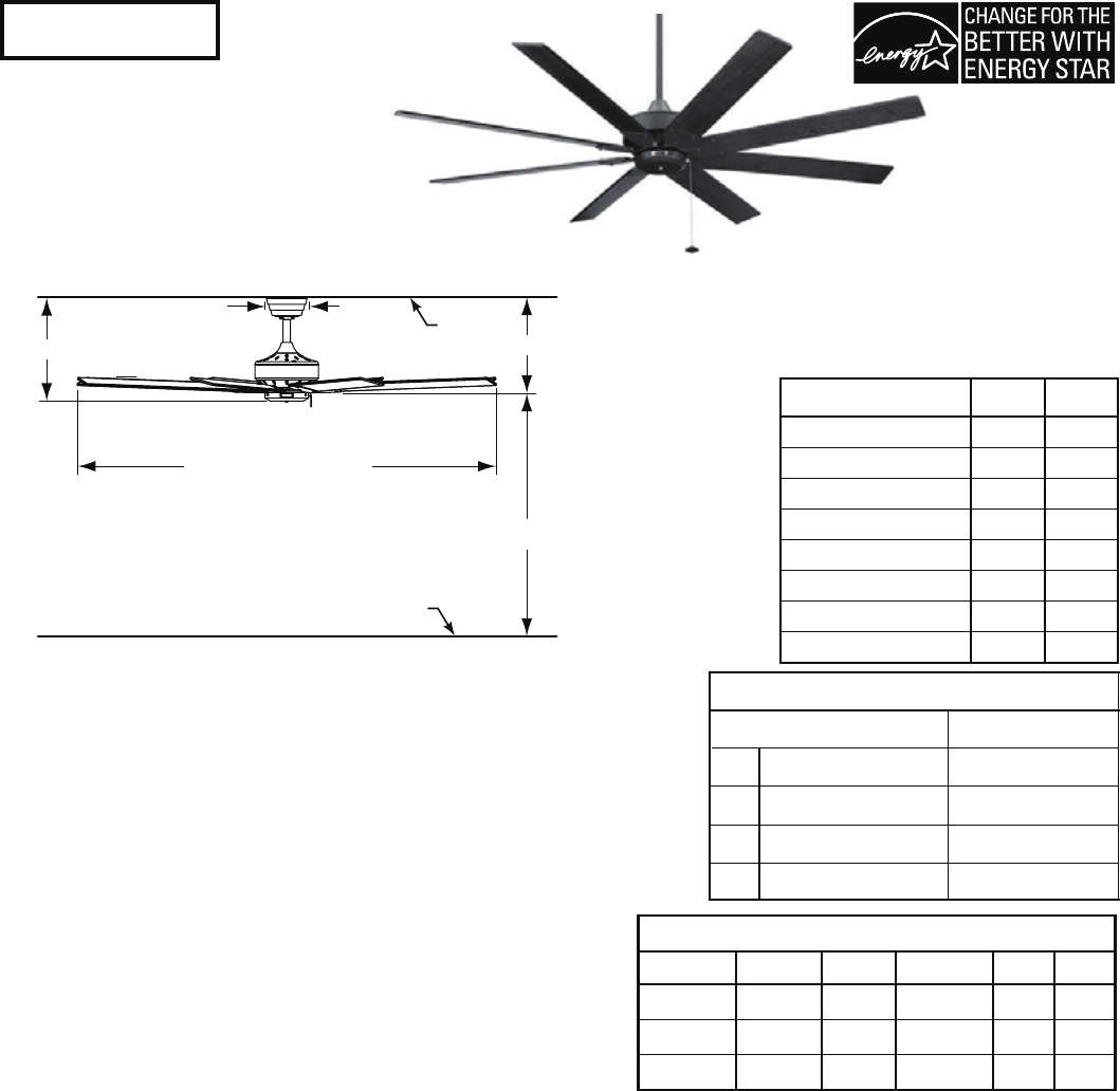 Fan comes with a 1˝ dia. x 6˝ long downrod (DR1-6). Optional downrods available in 12˝, 18˝, 24˝, 36˝, 48˝, 60˝ and 72˝