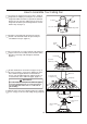 Cómo ensamblar el ventilador de techo (cont.) 5. Pase los cables y cable de seguridad a través de la cubierta de unión del motor, la cubierta para el tornillo del capuchón y el capuchón con el lado abierto apuntando hacia arriba. (Figura 5) Capuchón de techo Cubierta de unión del motor Cubierta del tornillo de la base Figura 5 6. Vuelva a colocar la semiesfera en el barral como se indica a continuación.