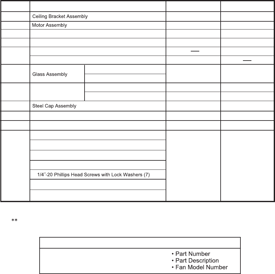 Insert FINISH CODES (Refer to fan model number located on downrod support)