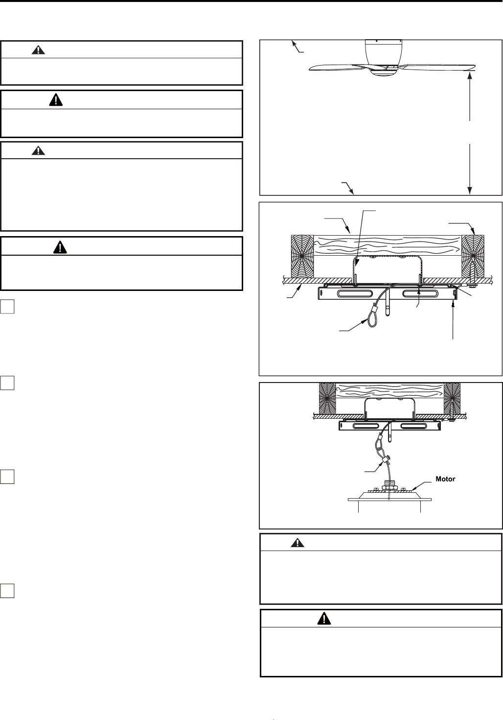 Las aspas del ventilador deben estar suspendidas, al