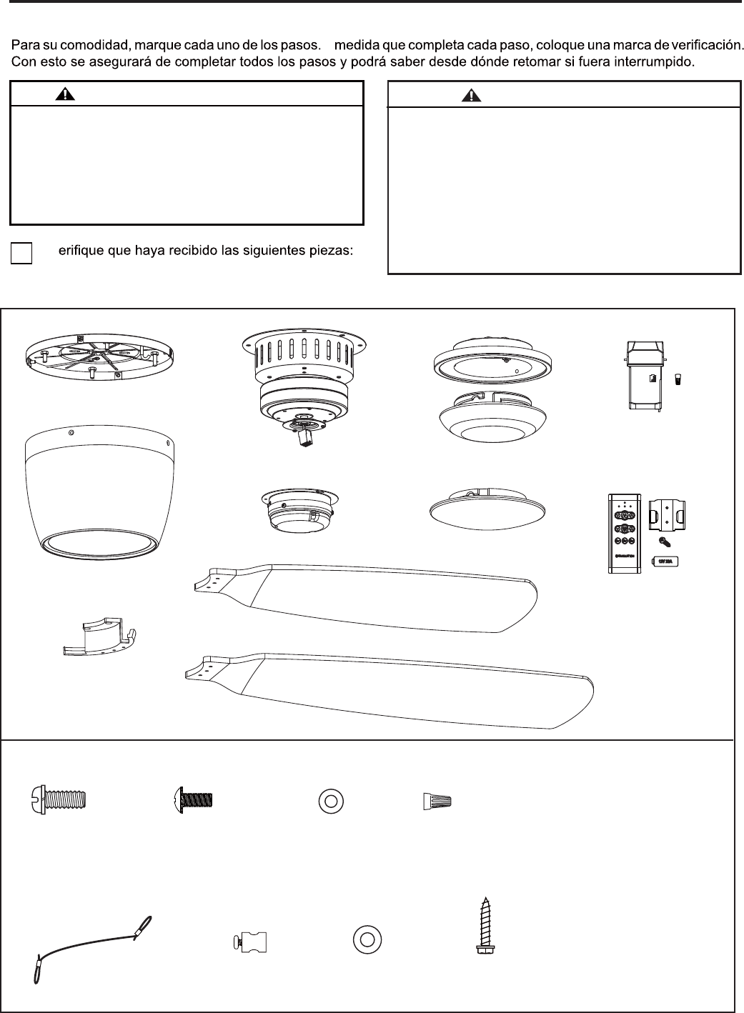 No instale o utilice el ventilador si falta alguna pieza o si hay