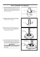 Cómo ensamblar el ventilador de techo (cont.) 5. Pase los cables y cable de seguridad a través de la cubierta de unión del motor, la cubierta para el tornillo del capuchón y el capuchón con el lado abierto apuntando hacia arriba. (Figura 5) Capuchón de techo Cubierta de unión del motor Cubierta del tornillo de la base Figura 5 6. Vuelva a colocar la semiesfera en el barral como se indica a continuación.