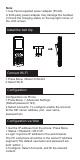 Note: 1.Use Fanvil-supplied power adapter (5V/2A). A third-party power adapter may damage the handset. 2.Check the charging status on the top-right corner of the LCD screen. Install the belt clip Connect Wi-Fi 1.Press Menu >Basic>9 WLAN. 2.Select Wi-Fi. Configuration Configuration via Phone 1.Press Menu > Advanced Settings (Default password 123). 2.Select Accounts: To configure enable the account, fill the SIP server address, port, user name, password etc. Configuration via Web 1.
