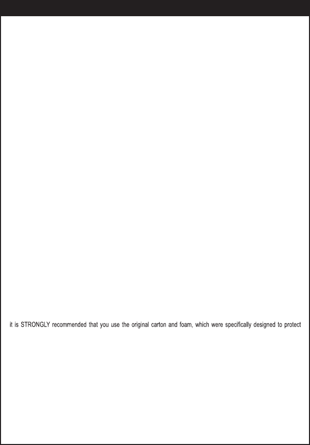 PLEASE RETAIN THE ORIGINAL SHIPPING CARTON AND FOAM. If you need to return the unit for service or upgrade