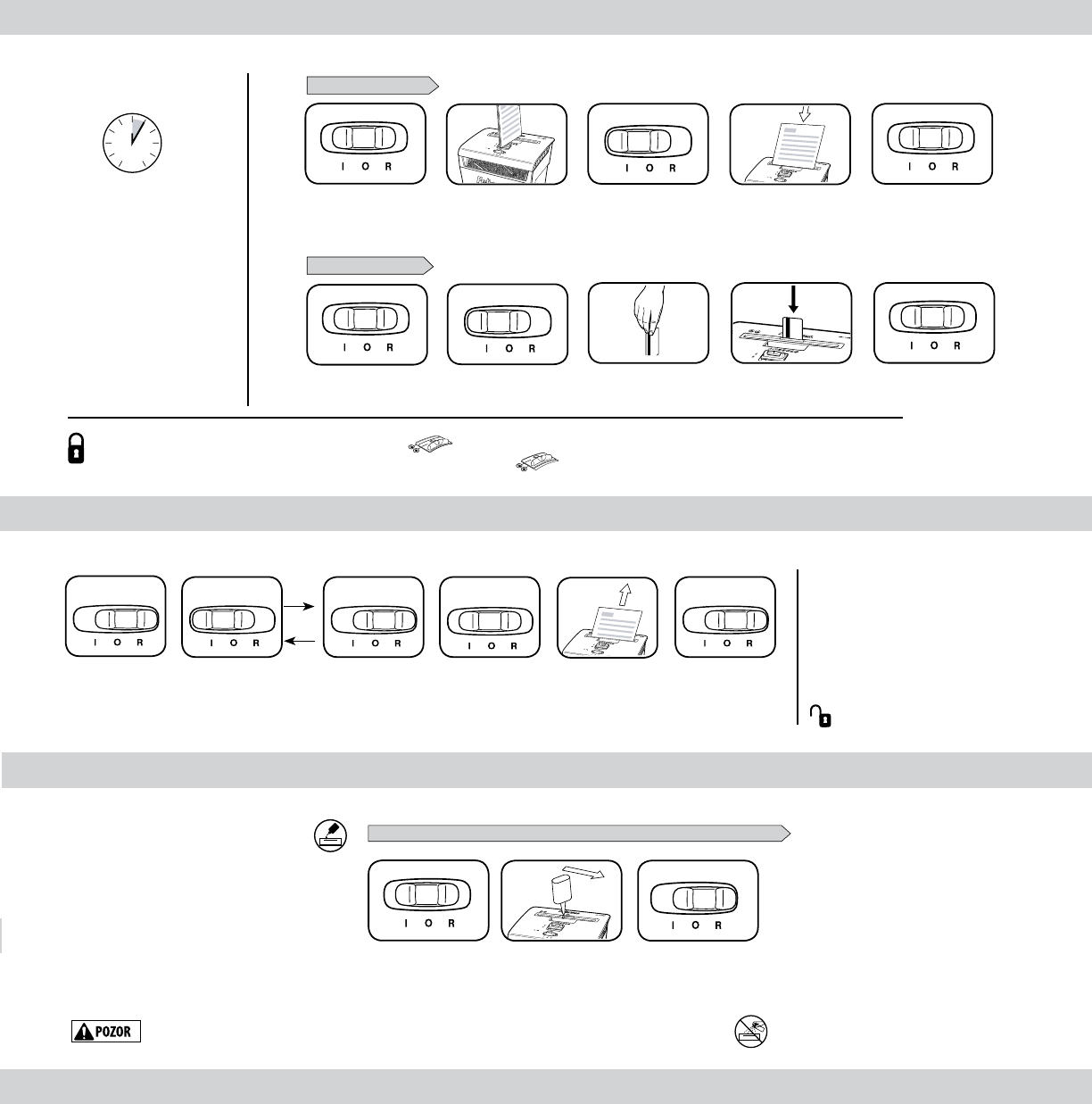 Bezpečnostný zámok zabraňuje náhodnému spusteniu stroja. Ak chcete zariadenie nastaviť, počkajte, kým sa neukončí skartovanie, zatlačte čierne