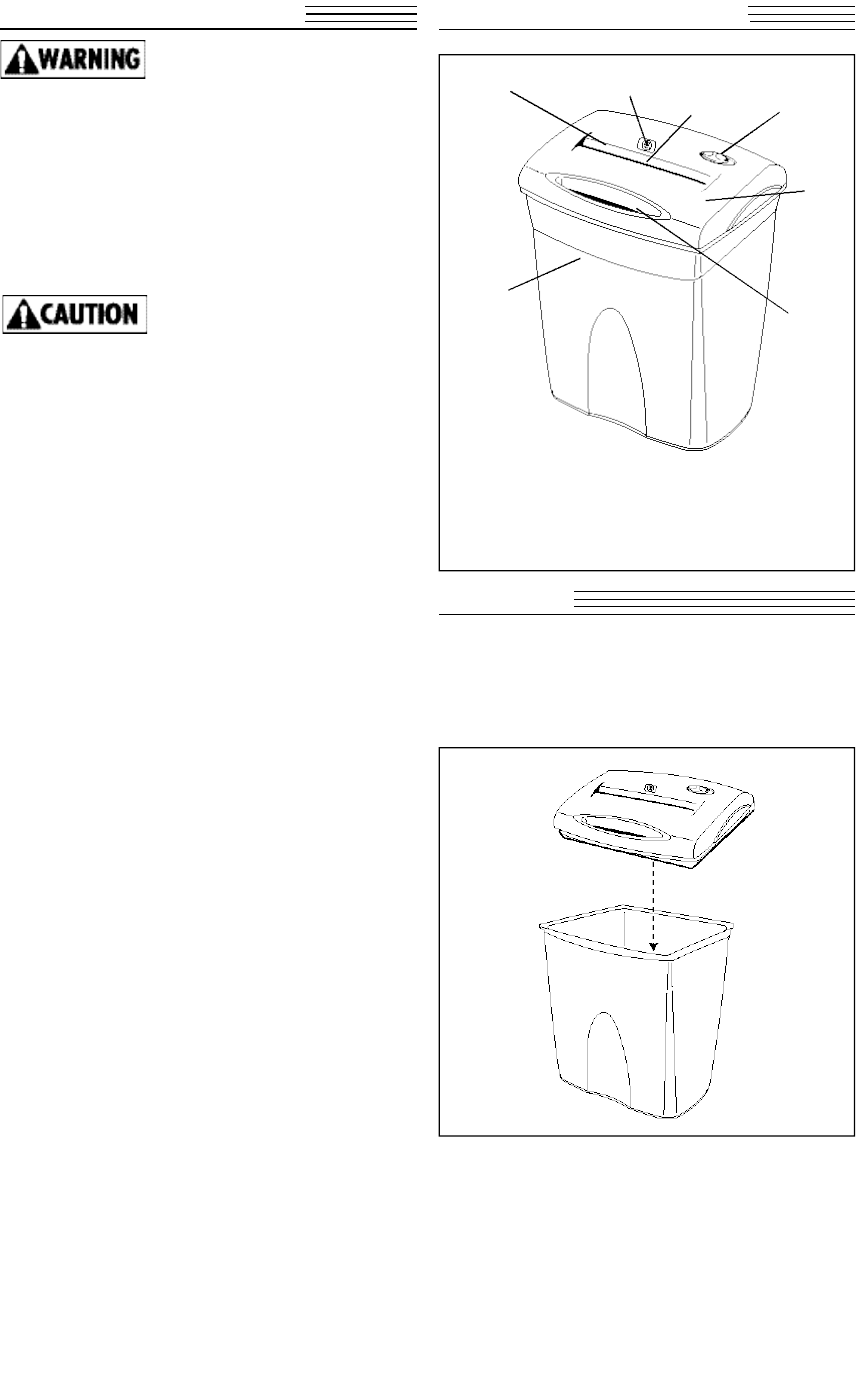• Keep loose objects (jewelry, ties, long hair) away from shredder.