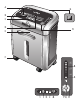ENGLISH Model SB-83i KEY A. SafeSense® Technology B. Paper entry C. See safety instructions D. CD/Card flap E. Pullout bin F. Casters G. Disconnect power switch H. Power controls I. Overheat (red) J. Bin open (red) K. Bin full (red) L. Remove Paper (red) M. SafeSense® indicator (yellow) N. Sheet capacity indicator O. Auto correcting button (blue) P. Reverse Q. On/off (blue) R. Forward CAPABILITIES Will shred: Paper, credit cards, CD/DVD’s, staples and small paper clips Maximum: Sheets per pass.......