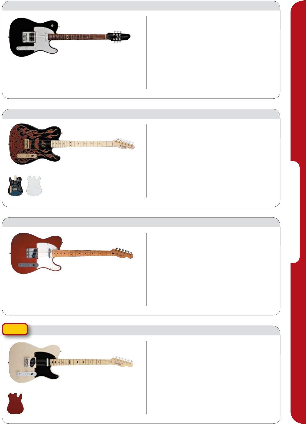 five-way Strat-o-Tele switching. Available in Pearl White (823), Red