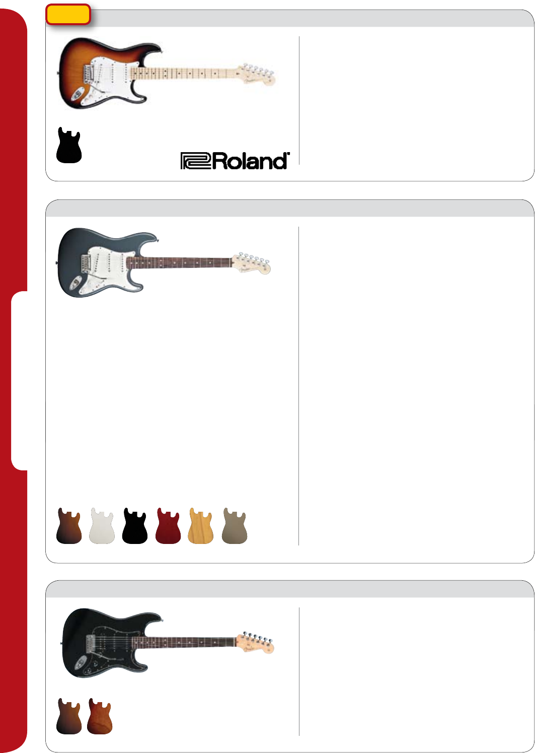 Stratocaster HSS guitars feature an alder body (ash on the Sienna