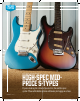 the tg test Head to head Melding old-school charm with modern features I 102 t’s no coincidence that these guitars find themselves embroiled in the same group test. Alongside the obvious similarities in pickup format and bolt-on construction, all four guitars share a common 648mm (25.5") scale length. This measurement is essential for the classic Strat snap in the top strings, and twang in the fatter ones.