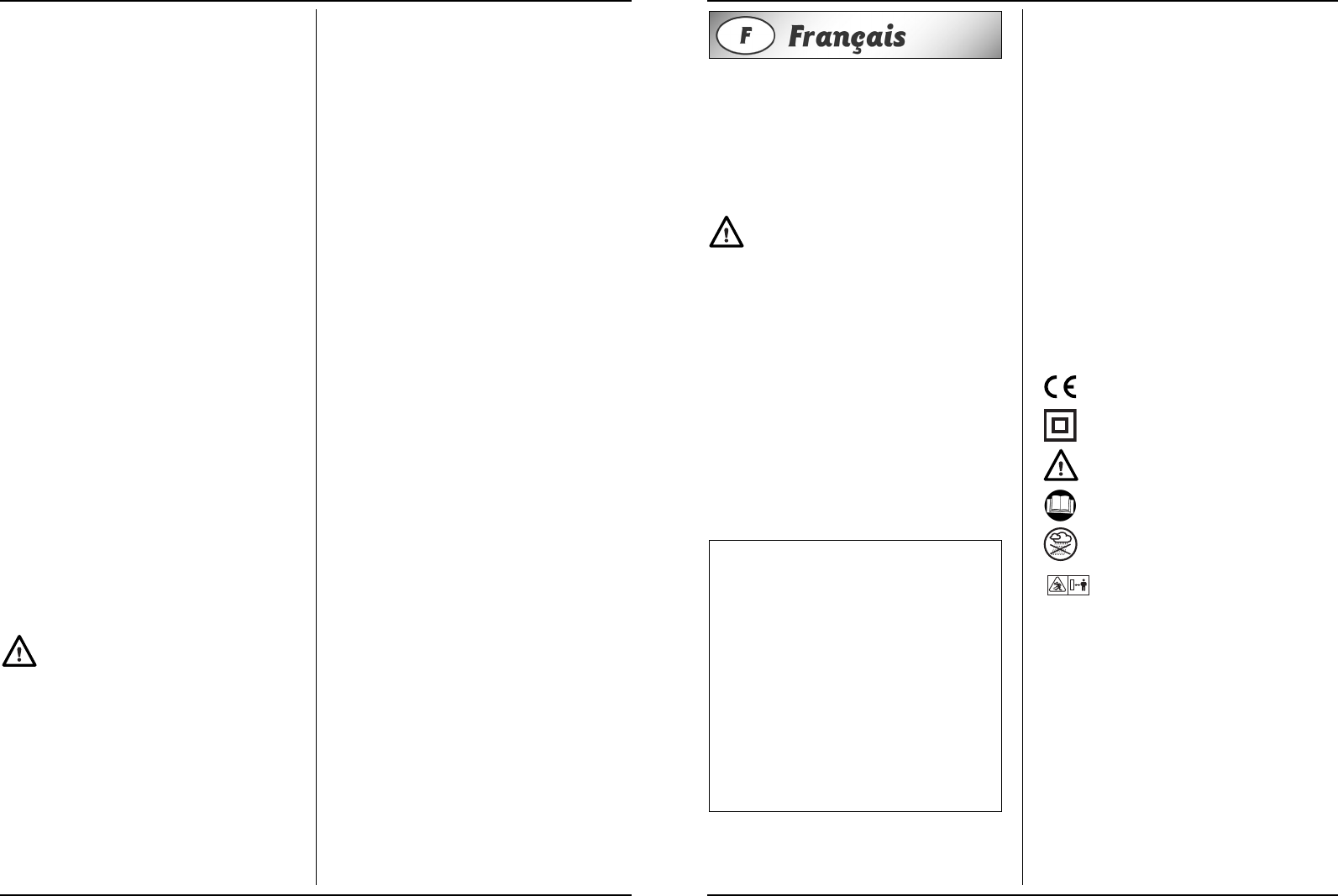 • Ne jamais utiliser cet appareil sans que le dispositif de