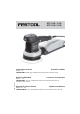 ETS 150/3 EQ ETS 150/5 EQ Instruction manual Eccentric sander Page 2 - 6 IMPORTANT: Read and understand all instructions before using. 464 760_004 Guide d’utilisation Ponceuse excentrique Page 7 - 11 IMPORTANT: Lire et comprendre toutes les instructions avant de démarrer les travaux. Manual de instrucciones Lijadora excéntrica Página 12 - 16 IMPORTANTE: Lea y comprende todas las instrucciones antes de usar.