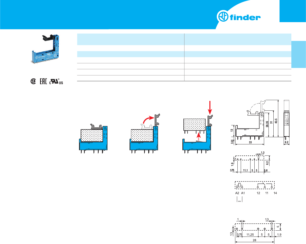 Rigidez dieléctrica ≥6kV (1.2/50μs) entre bobina y contactos