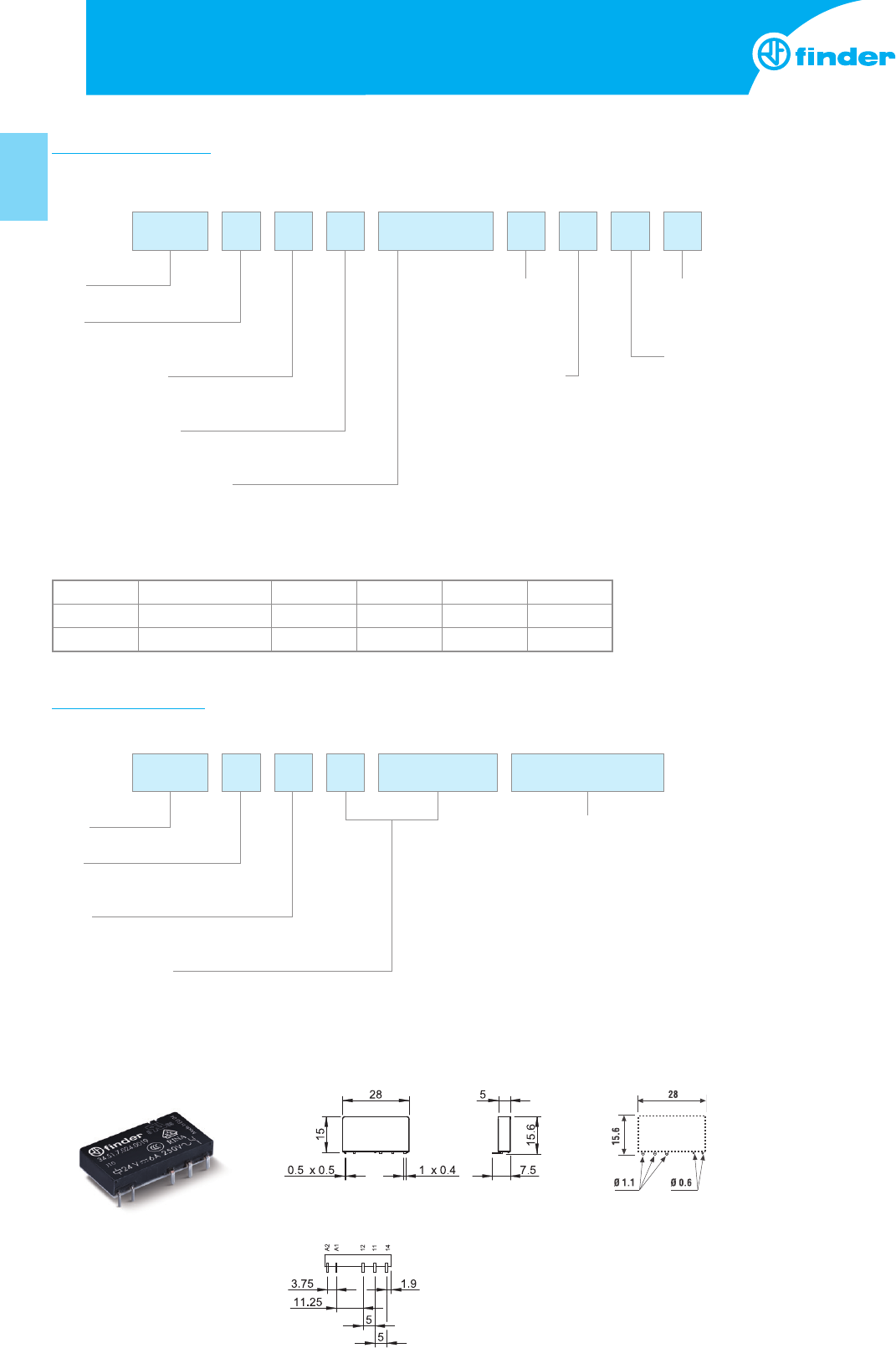 Ejemplo: serie 34, relé electromecánico fino, 1 contacto conmutado - 6A, tensión bobina 24V DC sensible.