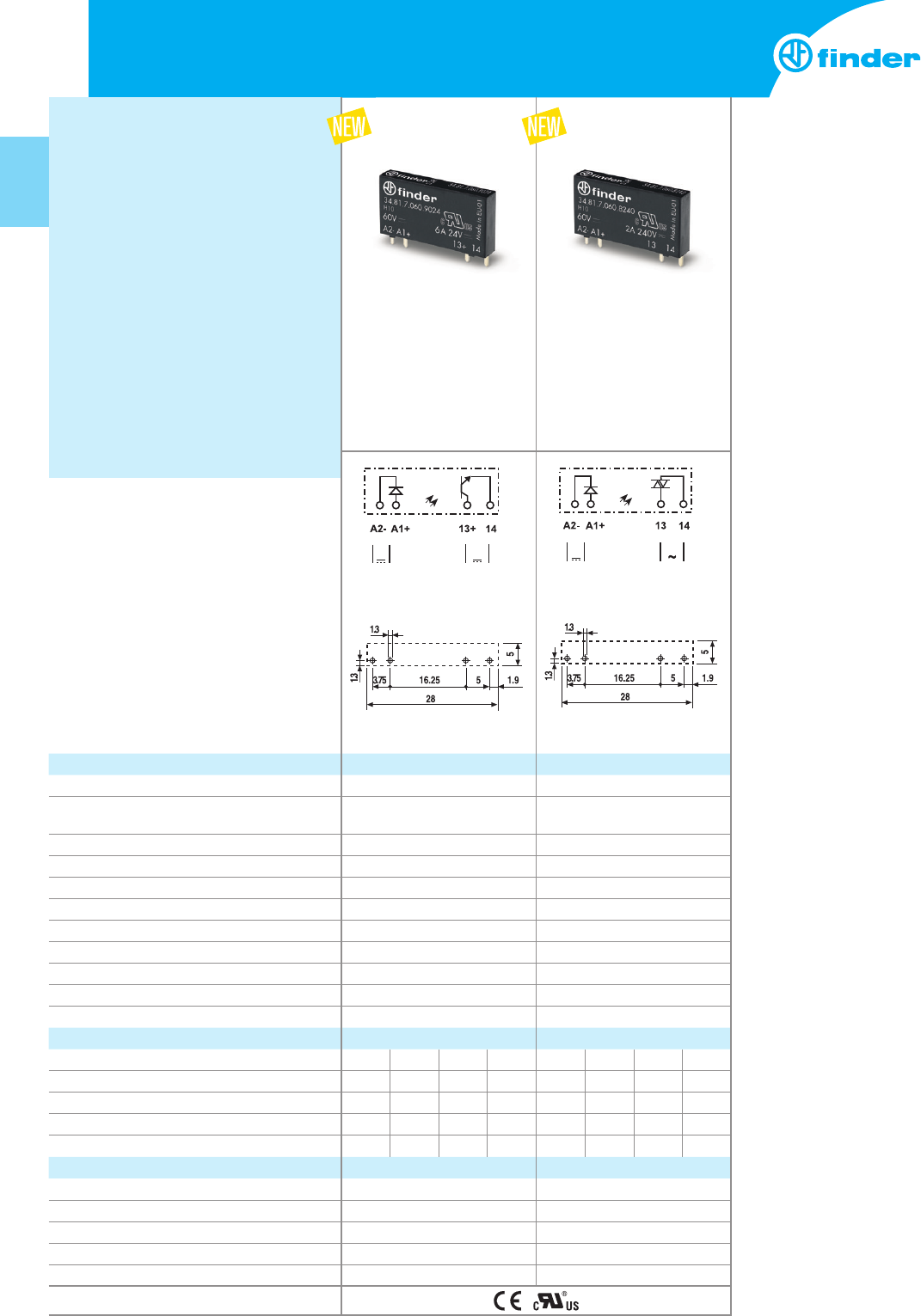 * Nota: todos los datos se refieren a la utilización del relé en circuito impreso o sobre zócalo de circuito impreso tipo 93.11.