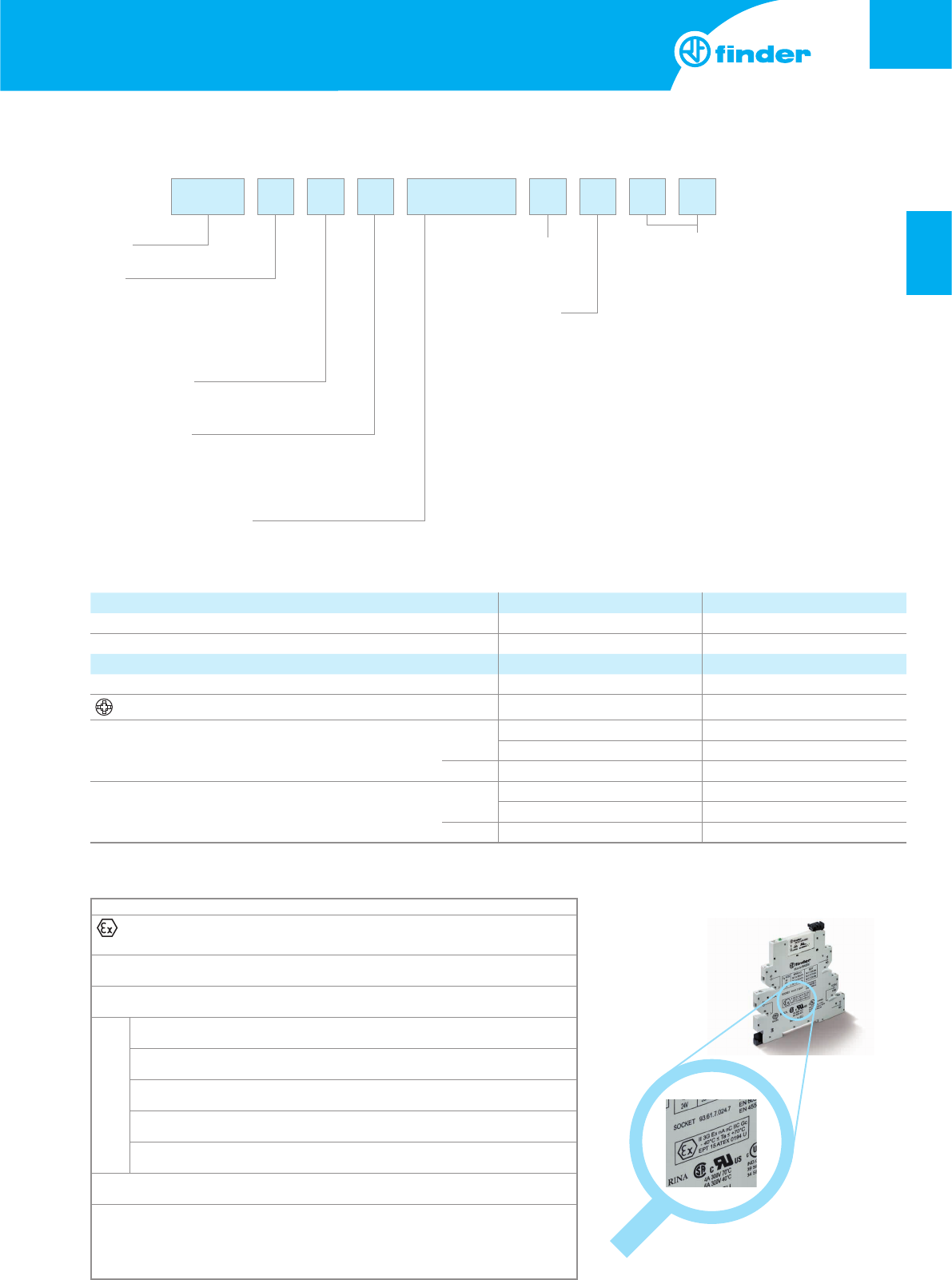 Esempio: serie 39, interfaccia modulare a relè, morsetti a vite, relè elettromeccanico, 1 scambio 6A, 24VDC, versione ATEX.