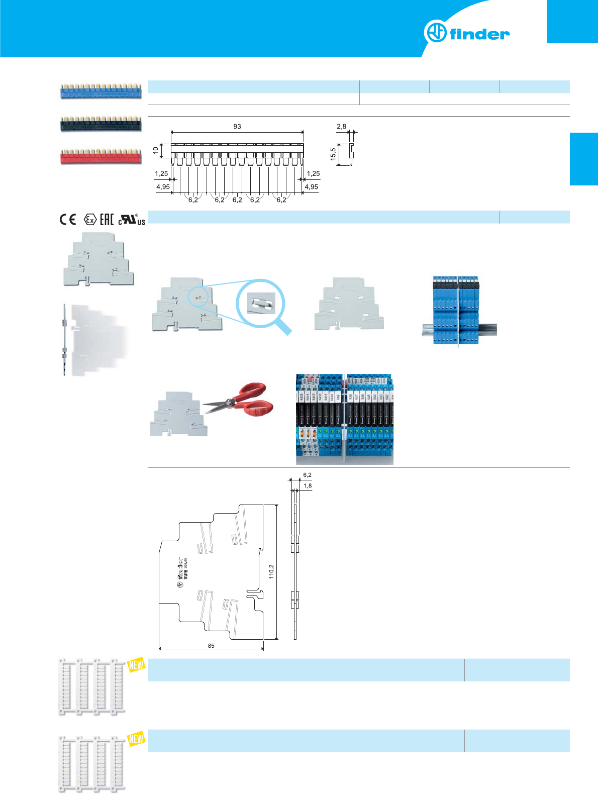 Propojovací lišta pro spojení až 16 patic 093.16 (modrá) 093.16.0 (černá) 093.16.1 (červená)