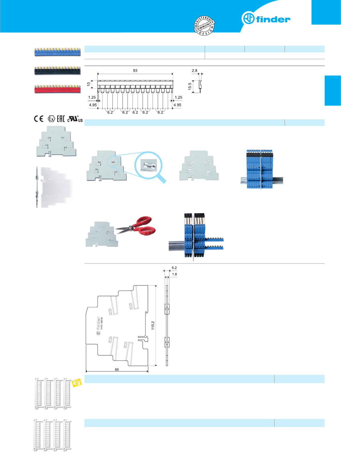 Baghetă de conexiune cu 16 pini 093.16 (albastru) 093.16.0 (negru) 093.16.1 (roşu)
