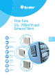 7F 7F SERIES Exhaust Filters SERIES Ordering information Example: Series 7F, Exhaust Filter for mounting in sidewalls, for indoor use, size 1. 7 F . 0 2 . 0 . 0 0 0 . 1 0 0 0 Colour Empty = G rey RAL 7035 (7F.02) Grey RAL 7000 (7F.03) 0= B lack RAL 9004 (only for 7F.