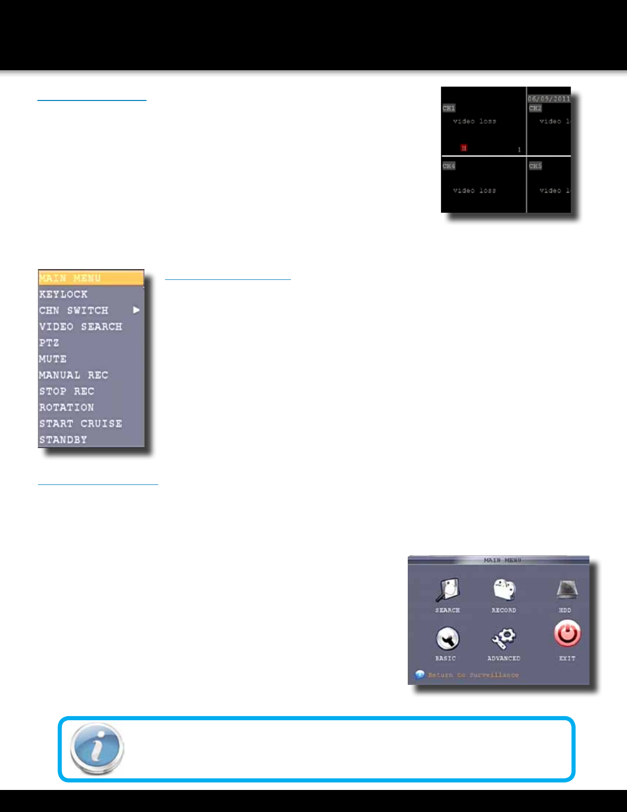 • VIDEO SEARCH: Open the Search Menu to view recorded video