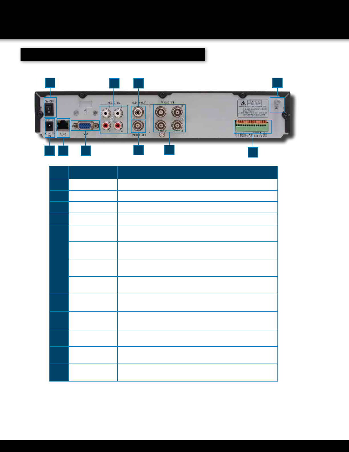 Audio Output For connecting audio signal to ampliļ¬ed speakers (4 RCA jacks)