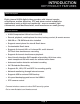 INTRODUCTION TABLE OF CONTENTS Section 1 2 Description Page # Introduction Safety Product Overview 2-3 6 7 What is in the Box 7 DVR Controls 3 Front Panel 8 Back Panel 9 Remote Control 10 Mouse Controls 11 Camera Power Connections 12 Connecting Devices 12 Initial Setup - System Operation 4 System Start Up 13 Power On/Off 13 Main Menu Access (Quick Access Menu) 14 Password Setup and User Permissions 15 Camera Display Setup 16 Language, Date and Time 17 Display, Video/Audio