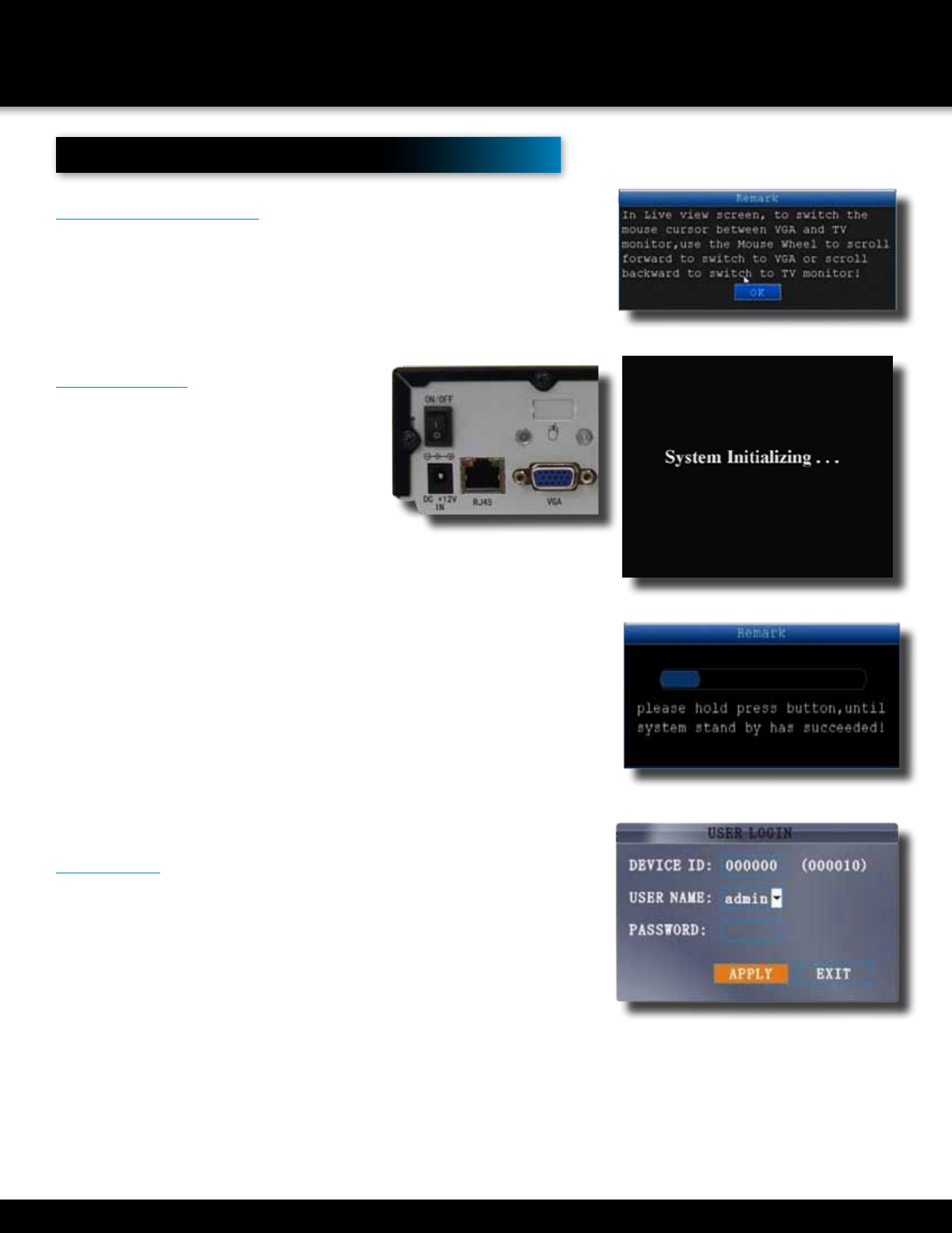 BNC (CVBS) monitor on initial setup, you will need to use the mouse