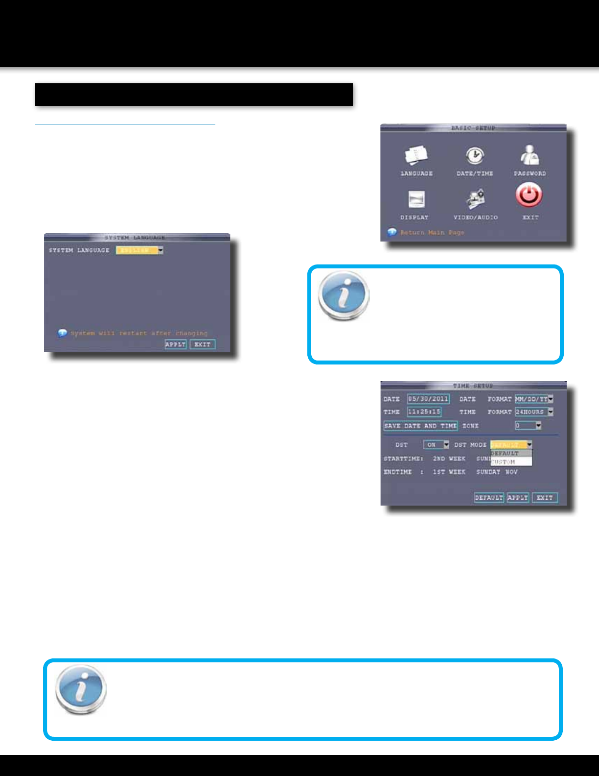1. Click DATE/TIME and configure the following options: