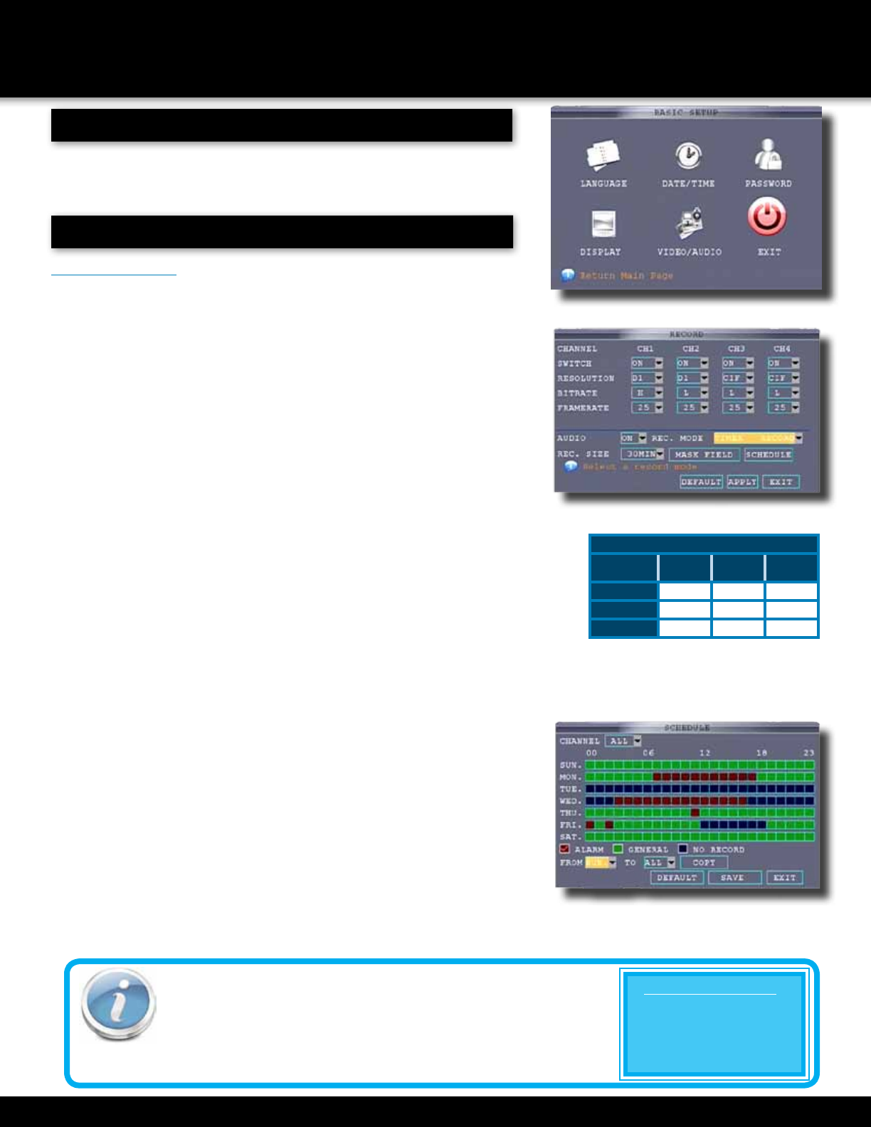 NOTE: Record Size sets the file size for recorded video files on the system. Instead of recording data as one large file,