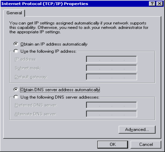 Except selecting “Automatic Obtain IP Address” (Shown as in the figure above) on