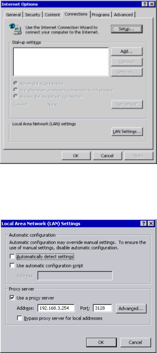 the figure below, we enter the address 192.168.3.254 and HTTP Port 3128 for Maat.