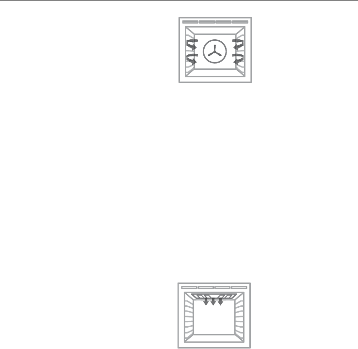 By using the central rear heating element and fan, hot air is blown into the cavity,